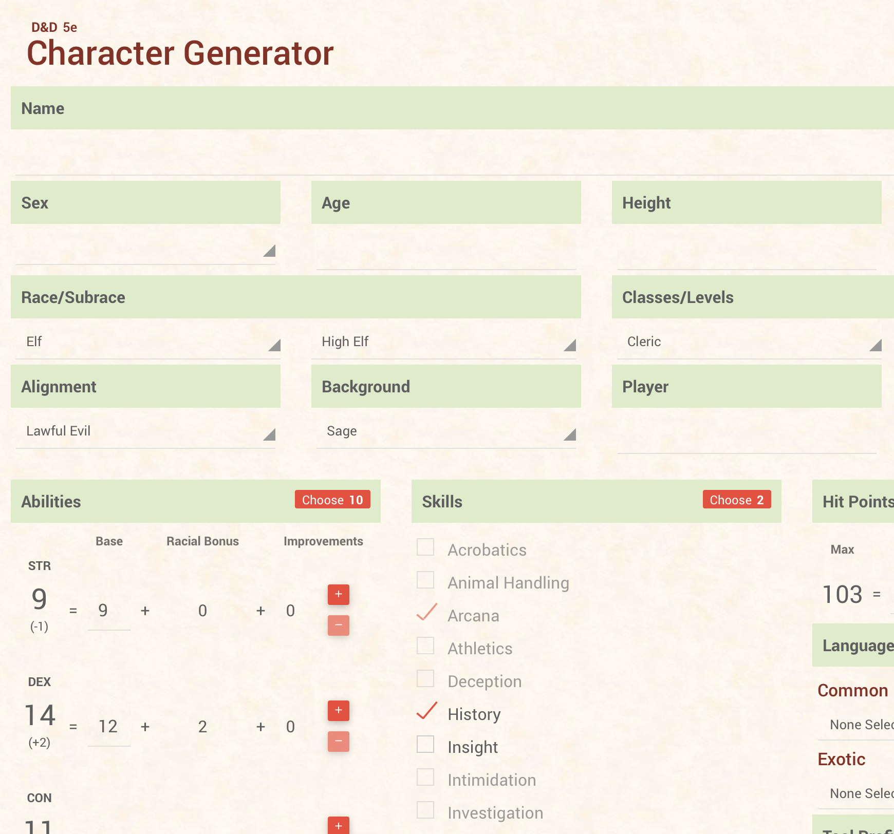 Becoming a patron will upgrade your account to premium, giving you no ads and more features. Dnd character creator is pretty much what it sounds like. D&d 5 character creator/generator tool. Characters are serializable into python dicts so they can be saved and loaded however you wish. All images must be original content, must include oc or art in the title, and must be accompanied by a description in the comments of at least 400 i was wondering if people had any go to game character creators, or tools that would allow someone to create a representation of a dungeons. Also, here's a written guide to character creation. Creates a 5e character for you to start with. The demo version by fluid entertainment, called simply the character generator, was distributed on cd format in the first third edition issue of. This character generator is is used by turn watcher. Image character maker search search all forums search this forum search this thread dungeons & dragons, d&d, their respective logos, and all wizards titles and characters are property of wizards. Today we look at how to use a easy platform for creating characters for dungeons and dragons using dnd beyond character creator. Levi blodgett, d&d, d&d character generator, dungeons and dragons, dungeons and dragons character generator. You and your friends create unique, fantastical characters to play this game.